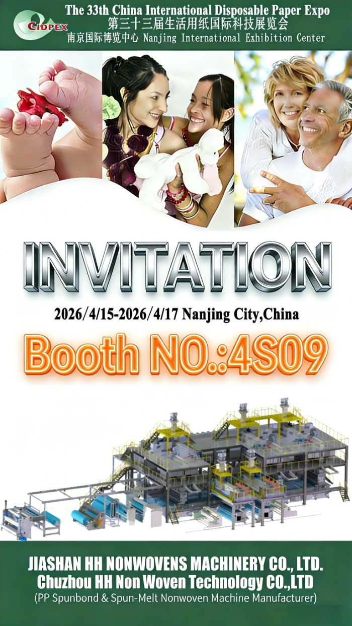 JIASHAN HH Non tessuti Machinery CO., LTD. e Chuzhou HH Non Woven Technology CO., LTD sono orgogliosi di annunciare la nostra partecipazione al 33a edizione dell'Expo internazionale della carta usa e getta in Cina (CIDPEX 2026) , avendo luogo da Dal 15 al 17 aprile 2026 , presso il Centro espositivo internazionale di Nanchino, città di Nanchino, Cina.
