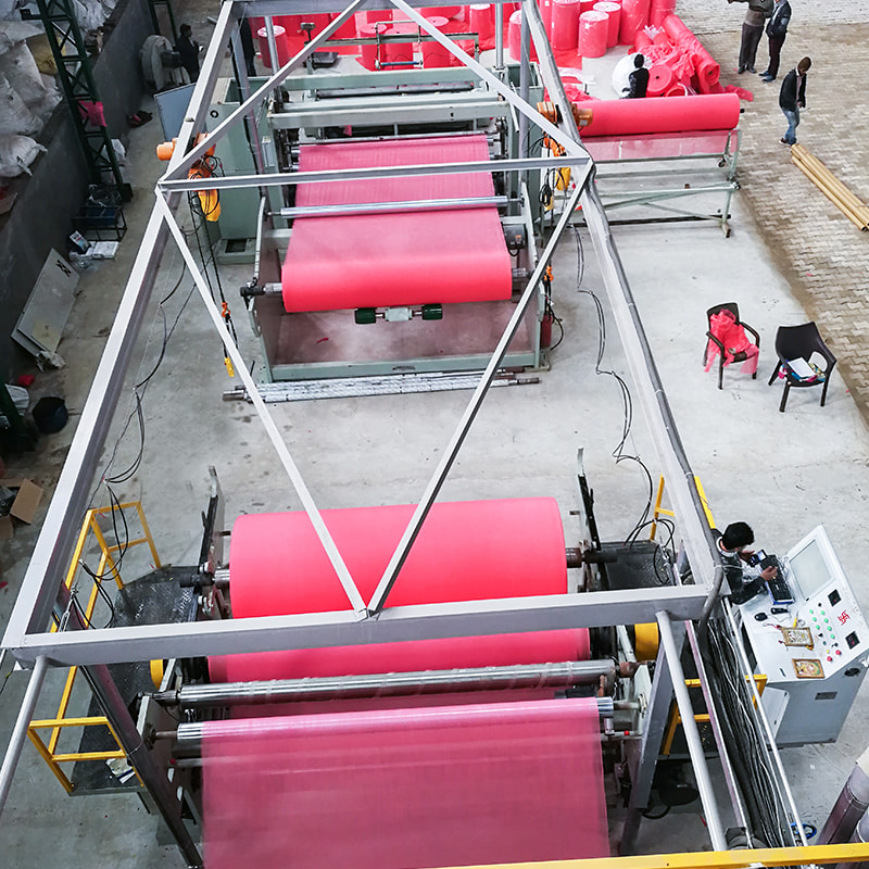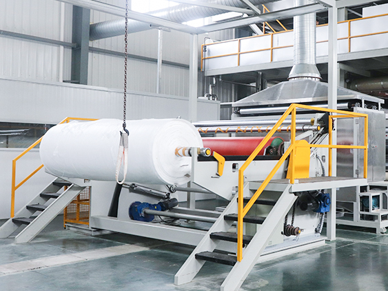 La macchina per tessuto non tessuto spunbond in PP viene utilizzata per produrre tessuto non tessuto spunbond in pp. Con la taglierina nella nostra macchina, il tessuto può essere tagliato in qualsiasi larghezza per soddisfare le diverse esigenze.