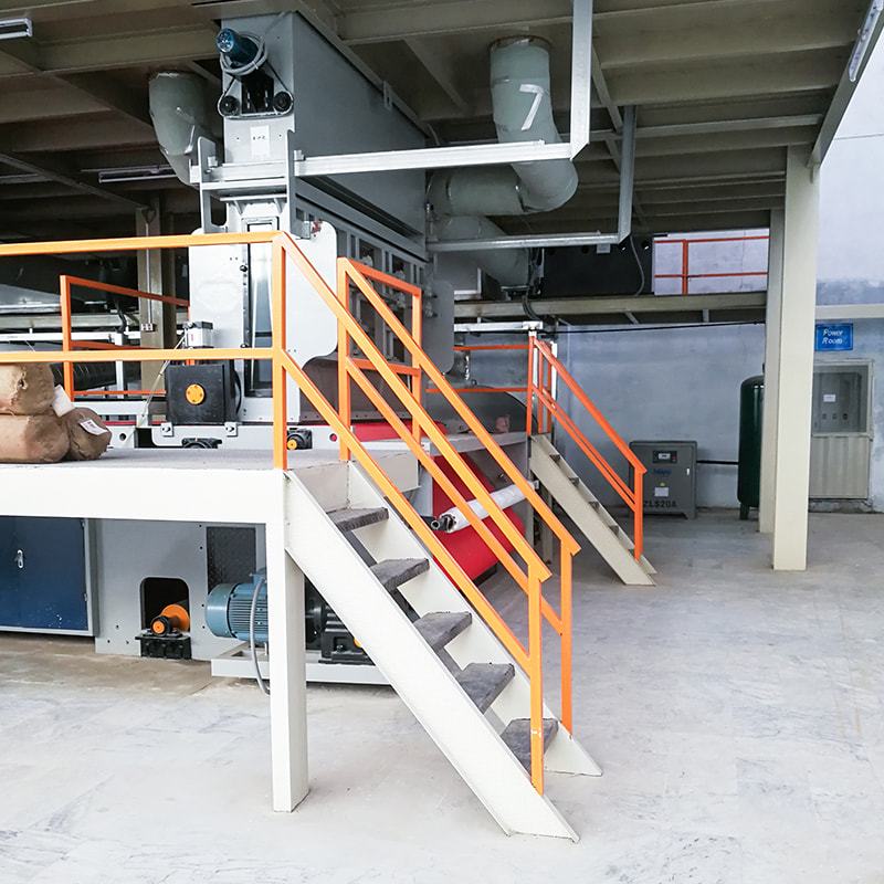 Utilizzare il CNC per produrre le parti principali della macchina non tessuta spunbond in pp. Il rullo della macchina utilizza una macchina di bilanciamento dinamico per produrre i rulli in modo da far funzionare la macchina ad alta velocità. I ​​motori principali utilizzano il motore Siemens e utilizzano il driver Siemens o ABB per controllare l'intera macchina .