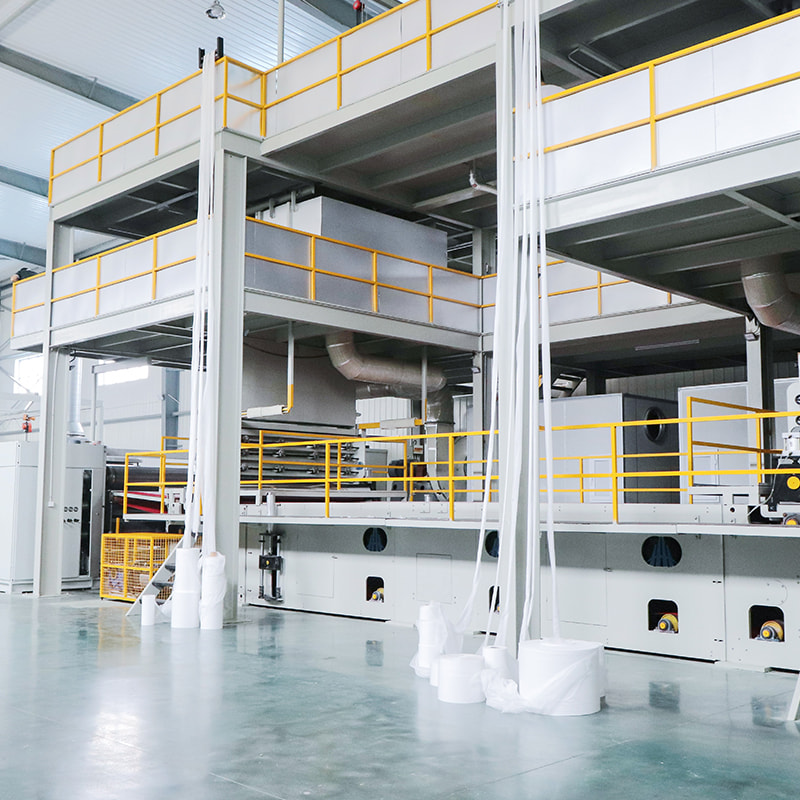 La macchina per tessuto non tessuto spunbond in PP viene utilizzata per produrre tessuto non tessuto spunbond in pp. Con la taglierina nella nostra macchina, il tessuto può essere tagliato in qualsiasi larghezza per soddisfare le diverse esigenze.