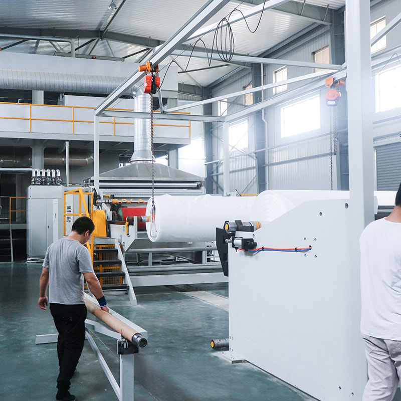 La macchina per tessuto non tessuto spunbond in PP viene utilizzata per produrre tessuto non tessuto spunbond in pp. Con la taglierina nella nostra macchina, il tessuto può essere tagliato in qualsiasi larghezza per soddisfare le diverse esigenze.