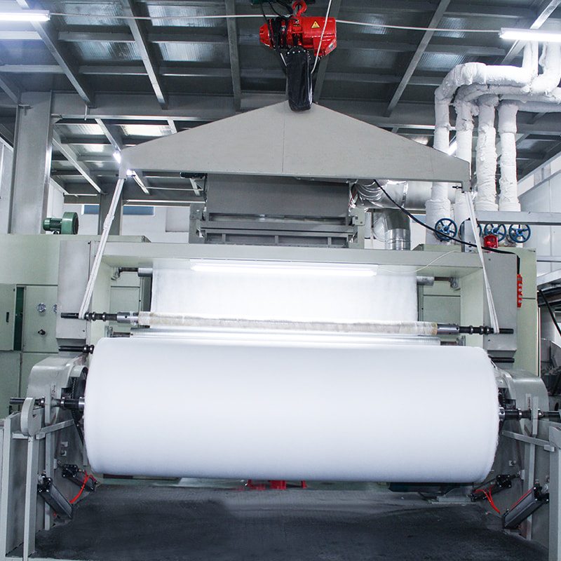 Formazione del filamento: durante l'estrusione e la rotazione, la miscela polimerica contenente il ritardante del fuoco viene elaborata in filamenti, formando la base per il tessuto non tessuto.